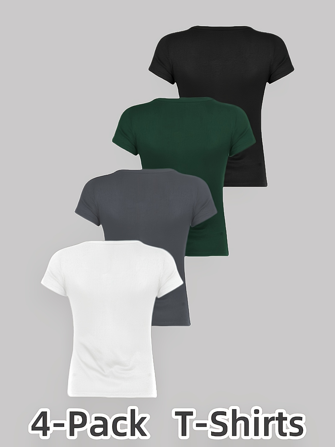 Women's Plus Size 4pcs T-Shirts - Stretchy Breathable V-Neck Button-Front Tops, Non-See-Through Fabric for Gym, Casual, Casual Attire - Black/, Machine Washable Summer Blouses, Workout Tops, Fitted Silhouette, Lightweight Material, Basic Tee, Women