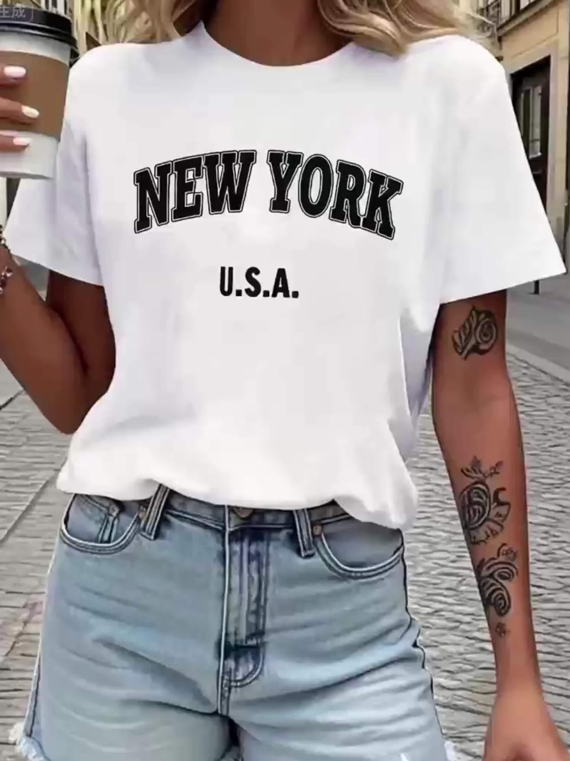 3-Pack Plus Size Letter Print T-Shirt, Short Sleeve Crew Neck Casual Top for Summer & Spring, Women'S Plus Size Clothing