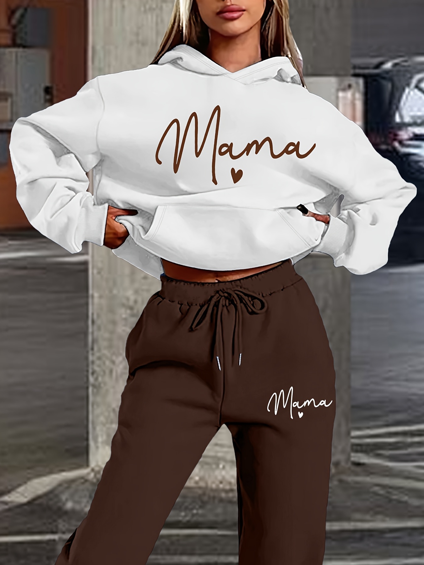 Women's Mother's Day Fashion Casual Sporty Mama Letter Heart Print Set, Premium Autumn/Winter Trendy Youthful Fleece Hoodie and Jogger Pants Two-Piece Outfit, Versatile Hooded Suit, Women's Clothing, Gift Choice