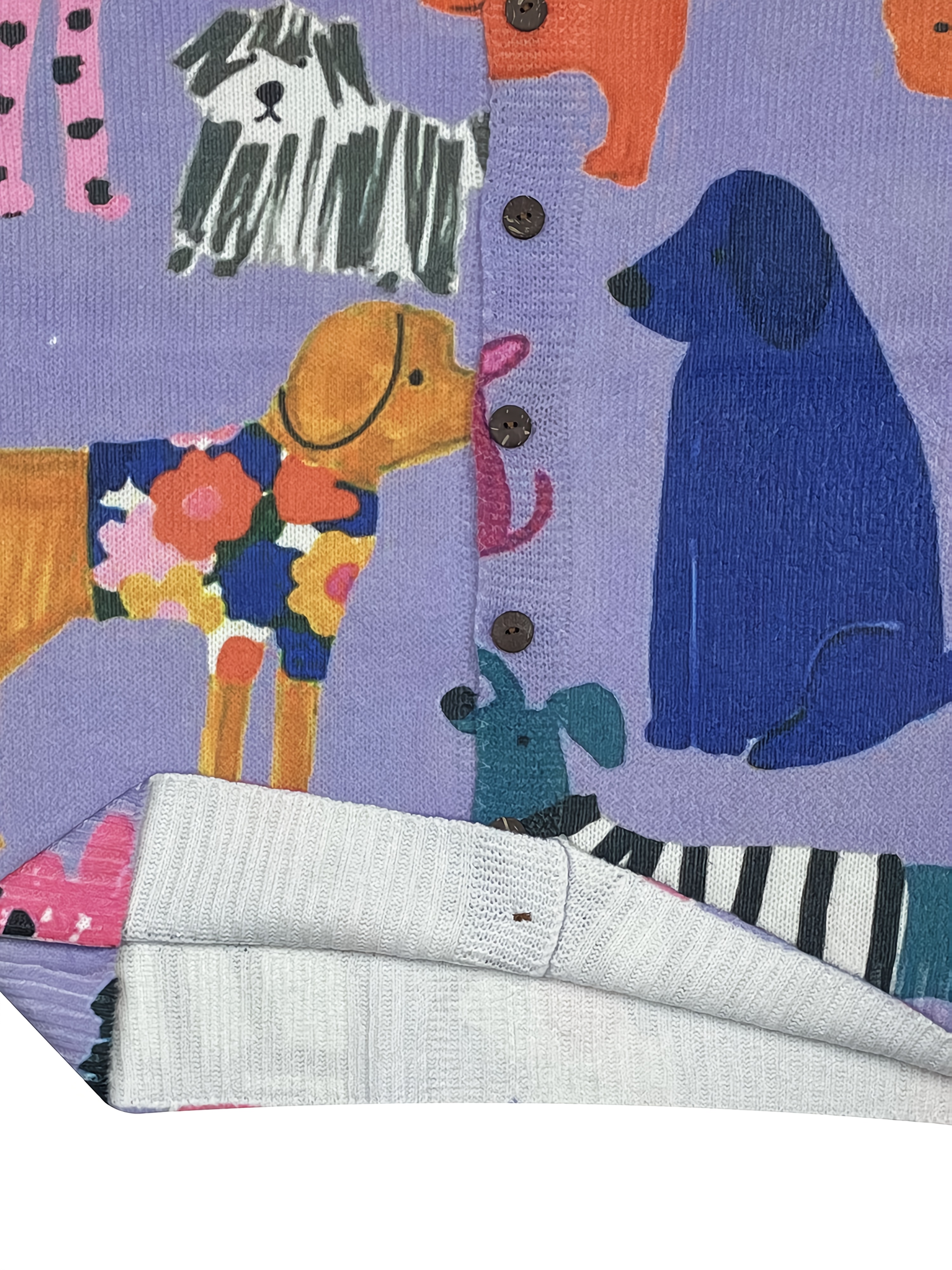 Women'S Playful Dog Print Cardigan - Young Style, 3D Printed, Polyester Knit with Button Front and Colorful Canine Design, All-Season Comfort
